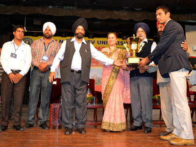 KU team receiving trophy during 28th North Zone Inter-University Youth Festival at Guru Nanak Dev University, Amritsar.