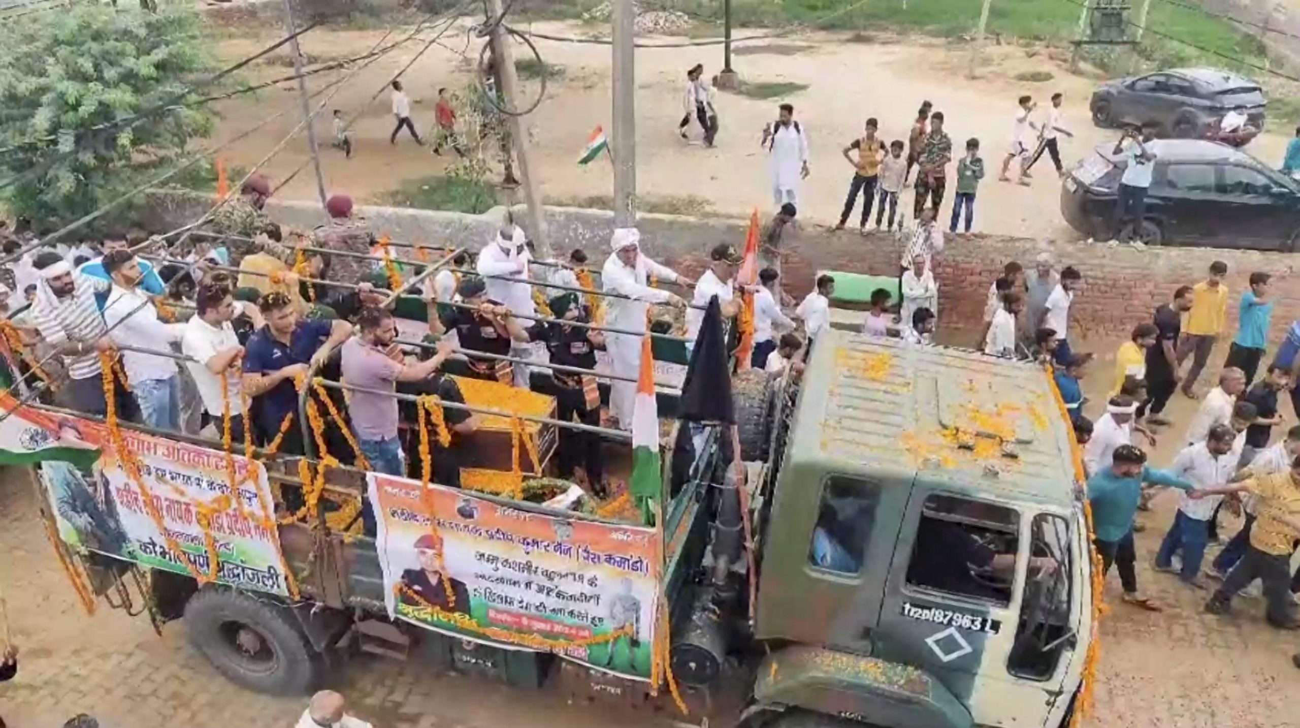 Haryana Minister Kamal Gupta was also present when the mortal remains of Nain (27), a para commando, were consigned to flames.