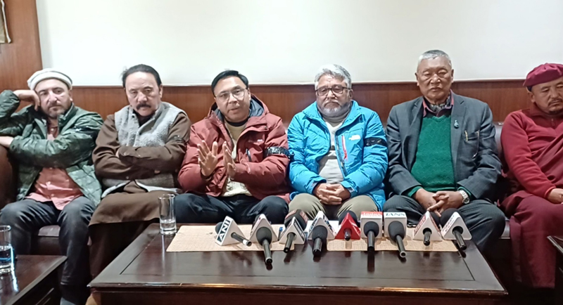 The joint press conference was attended by MP Ladakh Haji Hanifa Jan, KDA Co-chairman Qamar Ali Akhone (virtually), Leh Apex Body Co-chairman Chering Dorjay Lakrook, President Ladakh Gonpa Association Gyen Stanzin Dorjay, Asgar Ali Kabalai, Sajjad Kargili, Dr Abdul Qayum, and Ashraf Ali Barcha.