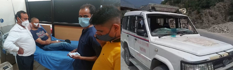 On seeing police vehicle passing through the highway near protesting site, the protestors turned violent and started stone pelting in which SHO Thathri Amrit Katoch received injuries and was rushed to GMC Hospital Doda, where he was undergoing treatment.