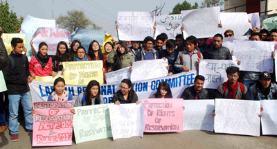 JAMMU, Feb 13: The Ladakh Region Action Committee for Protection of Reservation (LRACPR) held a protest rally here today against the unrelenting silence of the State Government over the J&K High Court’s verdict on reservation in promotions.