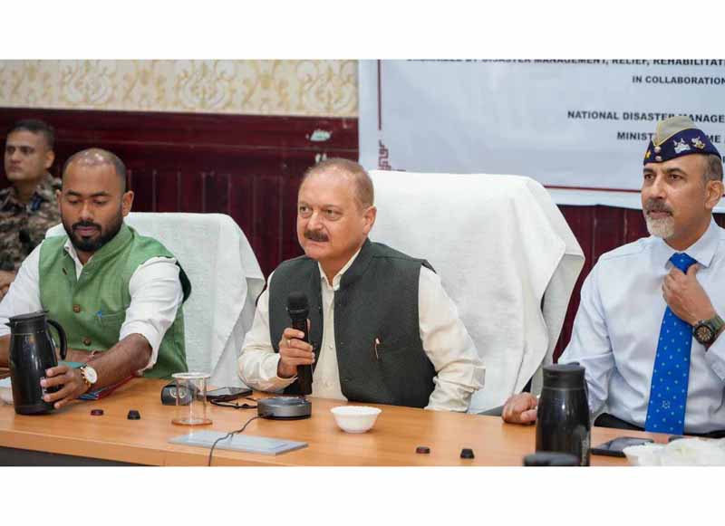 In his opening remarks, Advisor Ladakh, Dr Pawan Kotwal, highlighted the rising incidence of calamities such as cloudbursts and GLOFs and stated that the geographical conditions of Ladakh, where there are many GLOFs situated in far-flung little villages and the nature of building houses which are mostly mud-brick houses, leave a devastating aftermath. “We have special challenges and therefore, we must put our best foot forward to deal with such situations,” Dr Kotwal said.