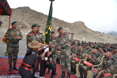 The Colonel of the Regiment Banner for displaying outstanding performance in various Inter Battalion professional and sports competition was presented to 5 Ladakh Scouts. Later in the day, a Barakhana was organised for all ranks, Veterans, Veer Naris and civil dignitaries.