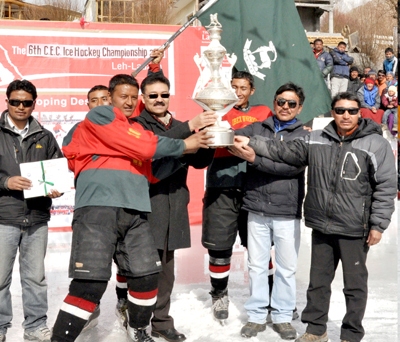 JAMMU, Jan 31: Defeating Ladakh Scouts Blue in the summit clash by four goals to nil (4-0), Ladakh Scouts Red lifted the title trophy of the boys 6th CEC Ice Hockey Championship 2013 at Karzoo Ice Hockey Rink, today.