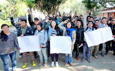 Large number of Ladakhi students assembled in Exhibition Ground near Press Club under the banner of All Ladakh Students Association Jammu (ALSAJ) and ALSWAJ and raised slogans in favour of their demands.