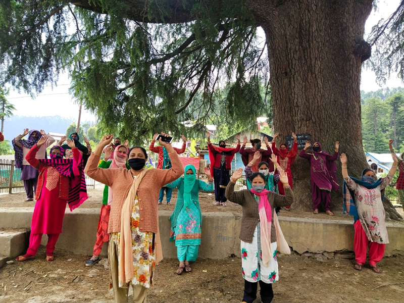A large number of ladies from Misrata Panchayat assembled near wine shop at Gathi Morh and held protest.