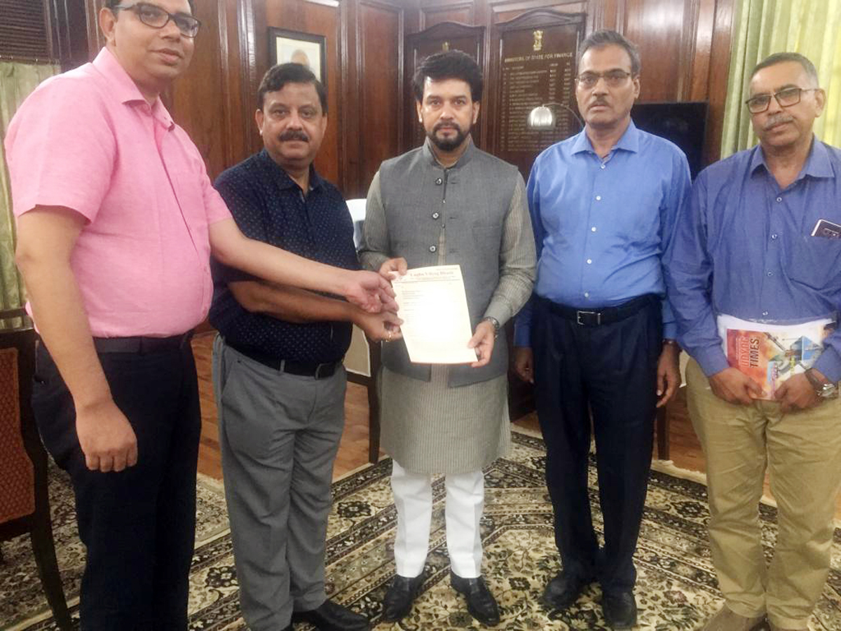 JAMMU, July 31: A delegation of Laghu Udyog Bharti, Jammu chapter led by its general secretary Parveen Pargal, met the Union Minister of State for Finance, Anurag Thakur in Delhi and apprised him of the issues of small scale industry in the State.