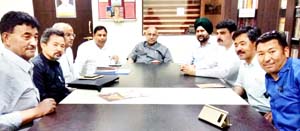JAMMU, Apr 2: Keeping an eye on approaching election in the region, BJP national vice-president and Prabhari J&K State, Avinash Rai Khanna along with BJP State president Sat Sharma, State general secretary (Org) Ashok Kaul, State general secretaries Dr Narinder Singh and Pawan Khajuria conducted a crucial meeting with leaders from the Leh and Kargil at party headquarter.