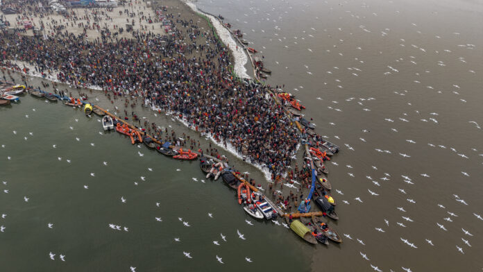 Prayagraj, Jan 3: Lakhs of devotees from different walks of life, including the elderly and children, took a dip in the icy cold waters of the Sangam here on ‘Paush Purnima’ as the Magh Mela began on Saturday.