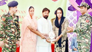 Lal Singh and officers of Sashastra Seema Bal (SSB) during curtain raiser prog at Kathua on Friday.