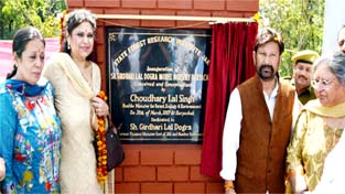 KATHUA, Mar 20: Minister for Forest, Environment and Ecology, Choudhary Lal Singh today inaugurated Girdhari Lal Dogra Model Nursery at Haria Chak of Tehsil Hiranagar. The nursery is spread over an area of 26 hectares of land and will be able to nurture 50 lakh saplings of 80 different varieties of plants and is the only nursery of its kind in the State developed by the State Forest Research Institute (SFRI).