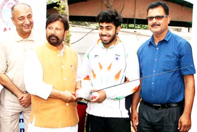 JAMMU, May 16: Ch. Lal Singh, Minister for Forest, Ecology & Environment in an impressive function held here today flagged off ace Fencer Vansh Mahajan for the forthcoming Junior Singapore Fencing Championship to be held at Singapore from May 26 to May 28, 2017.
