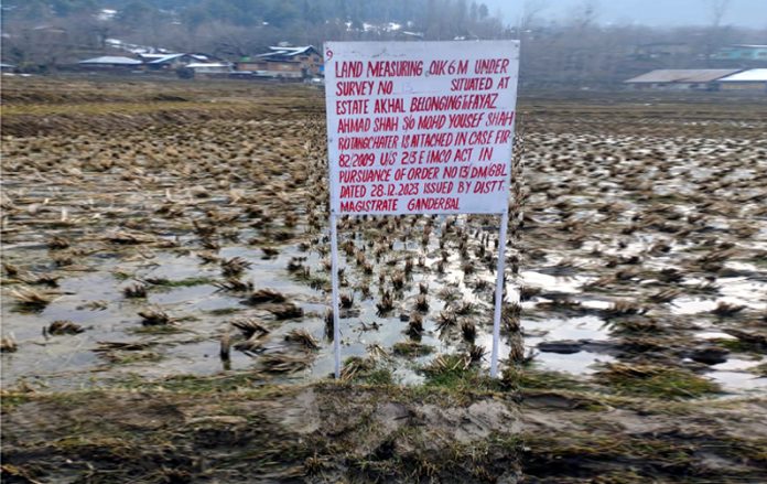 Land belonging to a militant attached in Ganderbal. -Excelsior/Firdous By Daily Excelsior - February 29, 2024 Share FacebookTwitterWhatsAppPinterestLinkedinCopy URLTelegramEmailTumblrReddItPrintKoo Land belonging to a militant attached in Ganderbal. -Excelsior/Firdous Follow our WhatsApp channel