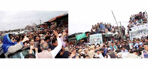 Large crowd greets Chief Minister Mehooba Mufti during her Batmaloo visit on Saturday. By Daily Excelsior - May 15, 2016 Share FacebookTwitterWhatsAppPinterestLinkedinCopy URLTelegramEmailTumblrReddItPrintKoo Large crowd greets Chief Minister Mehooba Mufti during her Batmaloo visit on Saturday. Large crowd greets Chief Minister Mehooba Mufti during her Batmaloo visit on Saturday. Follow our WhatsApp channel