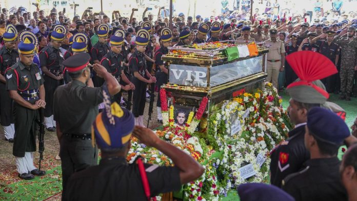 His mortal remains were flown to Bengaluru on Friday night, and later taken to his parents’ home in Anekal taluk near here.