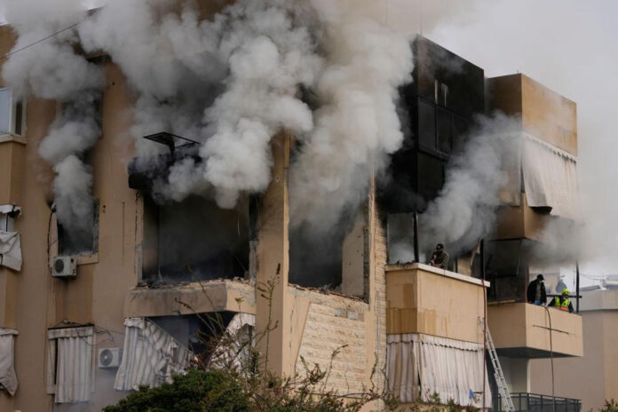 Sirens sounded in Tel Aviv, and loud booms were heard. (AP)