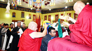 LBA Executive Members offering Mandala to Drikung Kyabgon Chetsang Rinpochey at Leh on Sunday. –Excelsior/Stanzin
