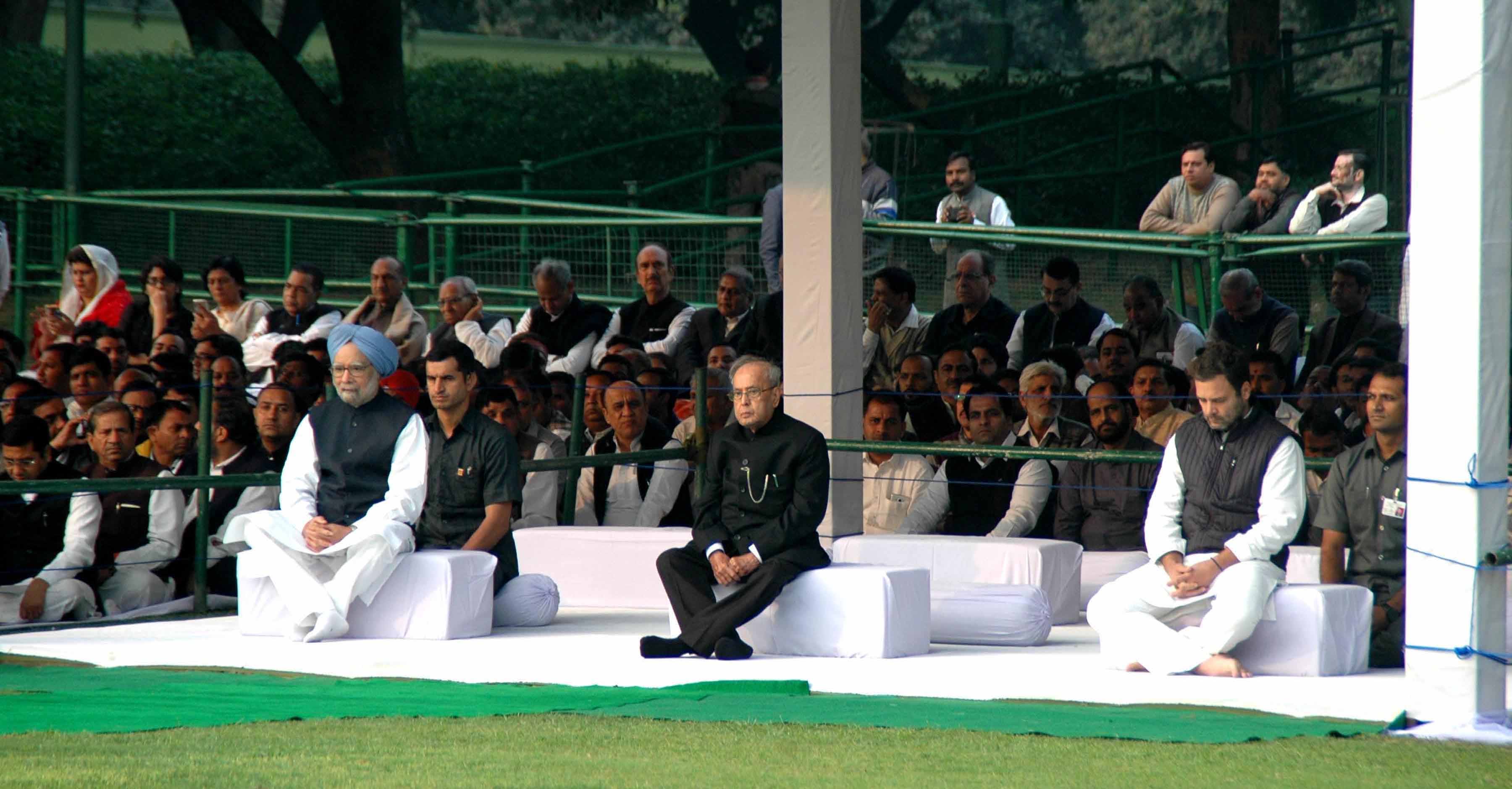 Senior Congress leaders, including former Prime Minister Manmohan Singh, party chief Sonia Gandhi and vice president Rahul Gandhi, also paid homage to the late leader.
