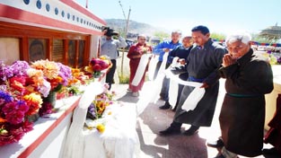 Leaders paying tributes to martyrs at their memorial in Leh. -Excelsior/Morup Stanzin
