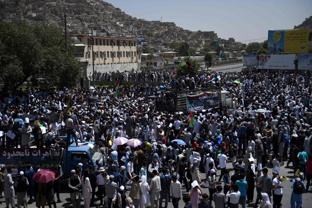 KABUL : A suicide bomber hit a large demonstration by members of Afghanistan’s Hazara minority in Kabul today, killing at least 10 people and wounding dozens more, officials said. Photographs posted on social media showed bodies, apparently at the site of the explosion, close to where thousands of people had been protesting over the route of a planned multimillion dollar power line. (AGENCIES)