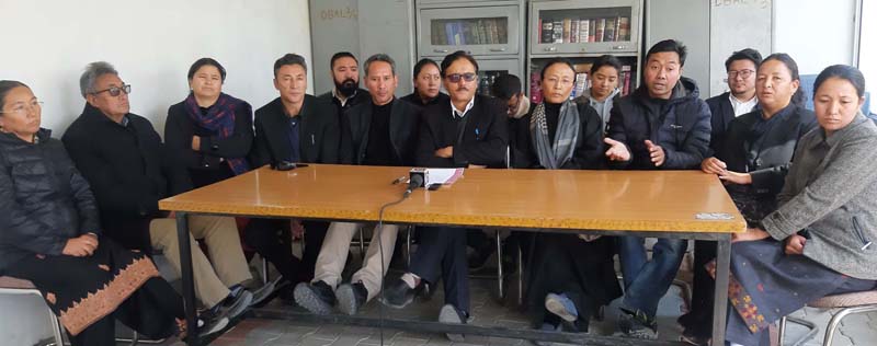 Leh Bar Association president, Mohd Shafi Lassu and advocates at a press conference in Leh on Thursday. —Excelsior/Morup Stanzin