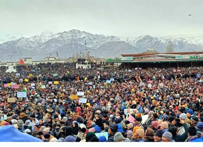 LEH, Mar 27: The Leh Apex Body (LAB) today organized a rally in the town in which educationist and climate activist Sonam Wangchuk announced that the agitation to demand Statehood and Sixth Schedule status for Ladakh will be intensified and a ‘border march’ will be held on April 7.