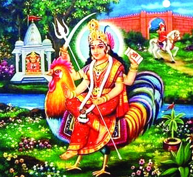 * Gunakeshi , the daughter of Indra’s charioteer, Matali, fell in love with a Naga, Sumukha. He couldn’t marry her as Garuda, the eagle, had been promised one naga a day as his food so that he wouldn’t kill all of them together. It was Sumukha’s turn the next day. Matali begged Indra who went to Vishnu for help. Spare him, said Vishnu. Garuda refused – I will remain hungry, he said. Vishnu placed his hand on Garuda and the eagle found he could not flap his wings any more. He was pinned. Have compassion on me, he begged Vishnu. For that, you must show compassion to another – for that is how all life is sustained. Garuda let the Naga go.