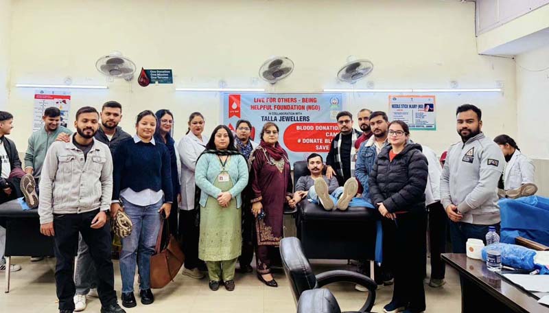 JAMMU, Dec 25: A blood donation camp organized by Live For Others – Being Helpful Foundation (LFO-BHF), in collaboration with Talla Jewellers was held here today.