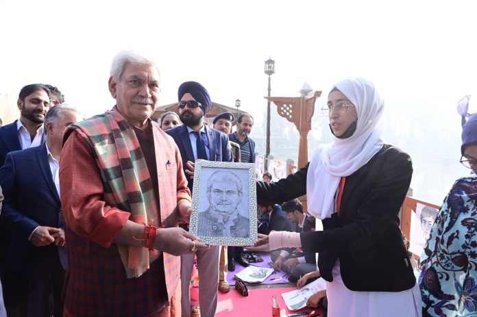 SRINAGAR, Oct 31: Lieutenant Governor Manoj Sinha today attended an open painting competition on the theme “Corruption free & Poverty free future”, Ideals of Ek Bharat Shreshtha Bharat at Zero Bridge, on the occasion of UT Foundation Day.