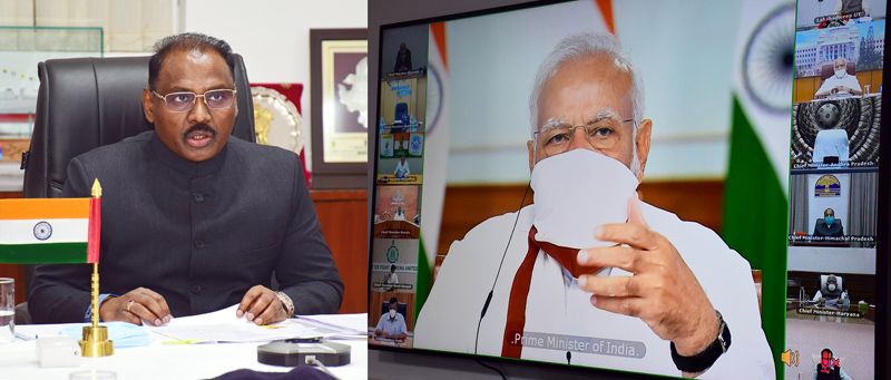The Prime Minister was interacting with Chief Ministers and heads of all States/UTs through video conferencing to review the efforts of the States/UTs to combat COVID-19.