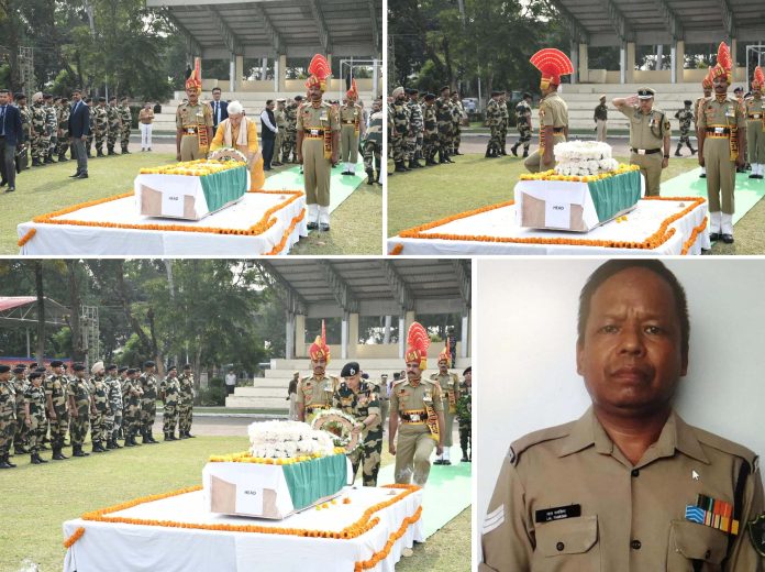 Jammu, Nov 9: Lieutenant Governor Manoj Sinha and Special Director General of BSF, P V Ramasastry on Thursday paid homage to the BSF head constable who was martyred in unprovoked firing by Pakistan Rangers along the International Border (IB) in Jammu and Kashmir’s Samba district.