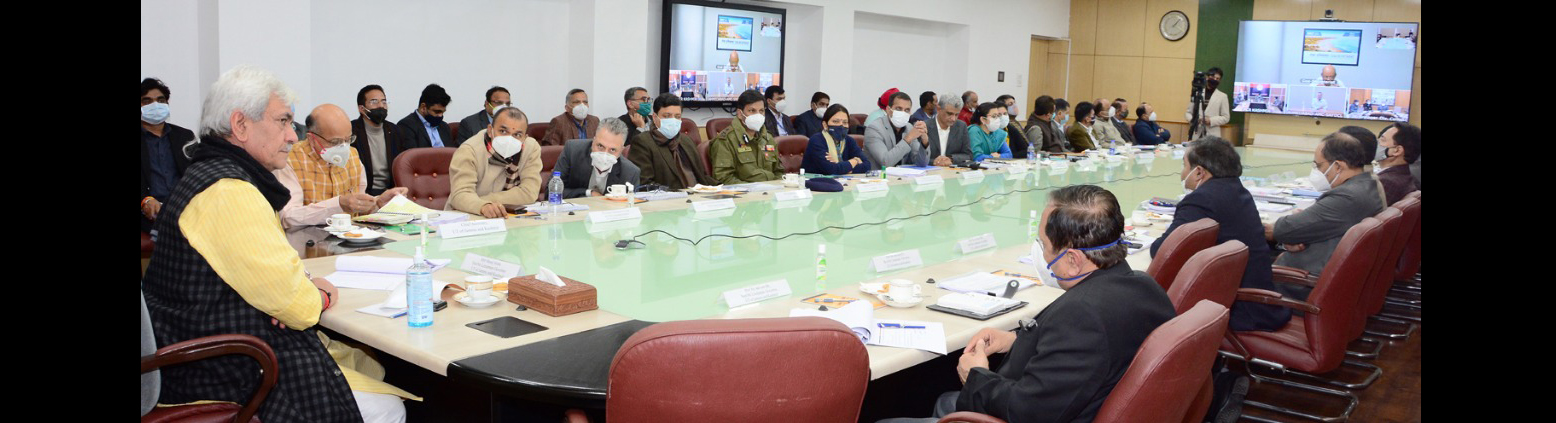 Sh. Rajeev Rai Bhatnagar, Advisor to the Lt Governor; Sh. BVR Subrahmanyam, Chief Secretary; Sh. Nitishwar Kumar, Principal Secretary to the Lt Governor; concerned Administrative Secretaries; Divisional Commissioners, Jammu and Kashmir; IGPs Jammu and Kashmir; Deputy Commissioners, Jammu and Srinagar; Commissioners, Jammu and Srinagar Municipal Corporations; VCs JDA and SDA; HoDs; Chief Engineers and other senior officers attended the meeting, in person and through virtual mode.