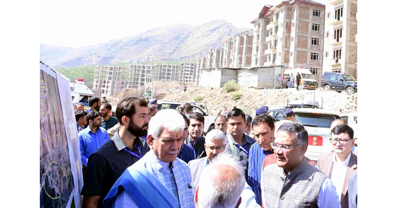 Srinagar, Oct 9: Lieutenant Governor Manoj Sinha today conducted on-site inspection of the transit accommodation for PM package employees at Zewan.