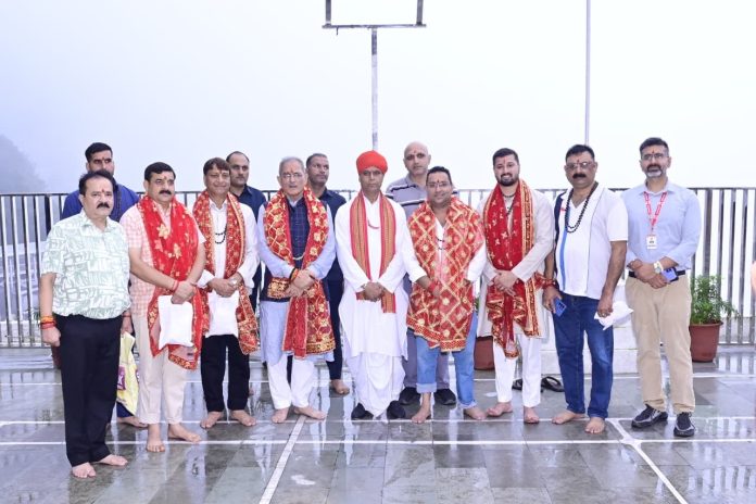 Katra, Jul 29: The Lieutenant Governor of Ladakh, Kavinder Gupta, visited the holy shrine of Mata Vaishno Devi Ji in Katra and paid obeisance at the sacred cave temple.