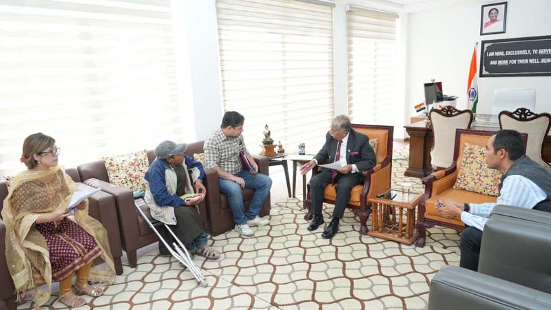 LG Ladakh, Brig (Retd) BD Mishra, interacting with a delegation at Raj Niwas Leh on Friday.