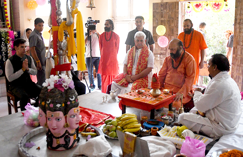JAMMU, Aug 9: In connection with annual Shri Amarnath Ji Yatra, Lieutenant Governor, Manoj Sinha today on the auspicious occasion of Shravan Shukla Panchami, also called Nag Panchami, performed the Pujan of Shri Amarnathji Chhari Mubarak in presence of Mahant Deependra Giri, sole custodian of the holy mace at Mahadev Gir Dashnami Akhara, Srinagar.