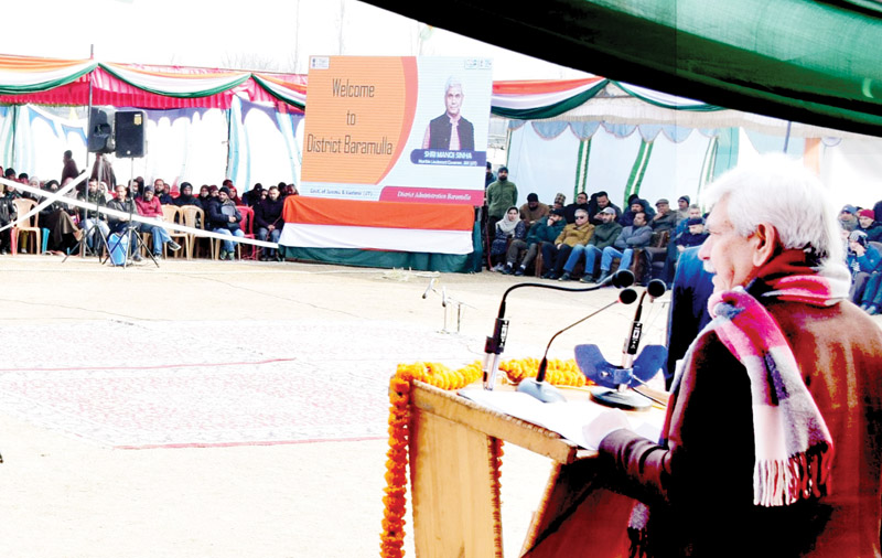 LG Manoj Sinha addressing a function at Baramulla on Tuesday. -Excelsior/Aabid Nabi By Daily Excelsior - January 17, 2024 Share FacebookTwitterWhatsAppPinterestLinkedinCopy URLTelegramEmailTumblrReddItPrintKoo LG Manoj Sinha addressing a function at Baramulla on Tuesday. -Excelsior/Aabid Nabi LG Manoj Sinha addressing a function at Baramulla on Tuesday. -Excelsior/Aabid Nabi Follow our WhatsApp channel