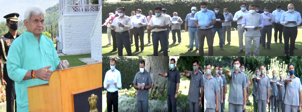 JAMMU, August 20: Jammu and Kashmir Lieutenant Governor Manoj Sinha on Friday administered the “Sadbhavana Diwas” pledge to officials and staff members of his secretariat at the Raj Bhavan here.
