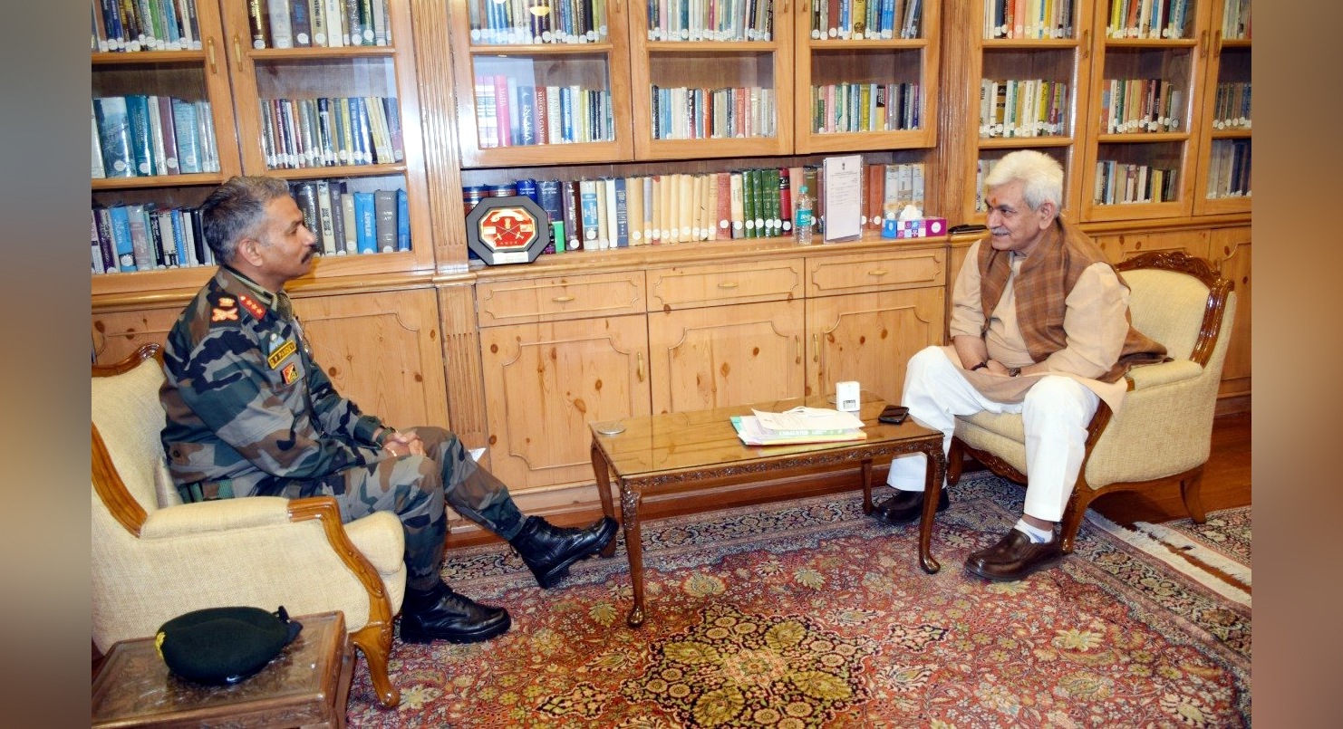 A Defence Ministry spokesman in a tweet on Official account of Chinar Corps, Indian Army on Monday said Chinar Corps Commander (CCC) Lt General D P Pandey called on LG Sinha at Raj Bhavan.