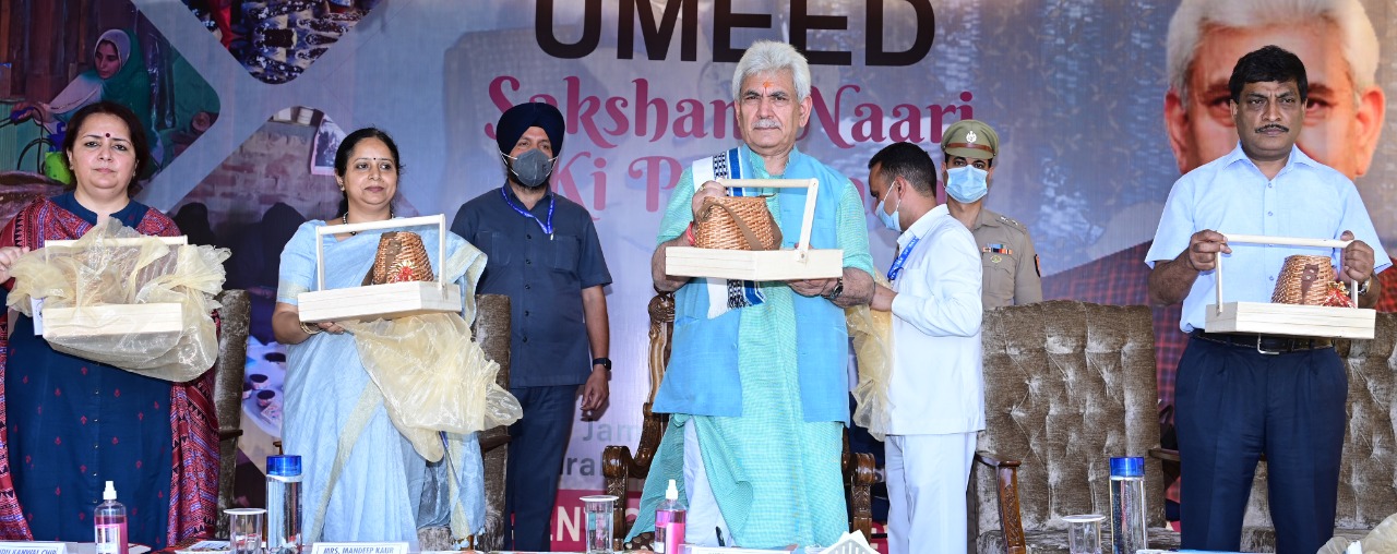 On the occasion, the Lt Governor e-inaugurated and laid foundation stone for New District Rural Haats across J&K and dedicated the facility to all the women entrepreneurs.