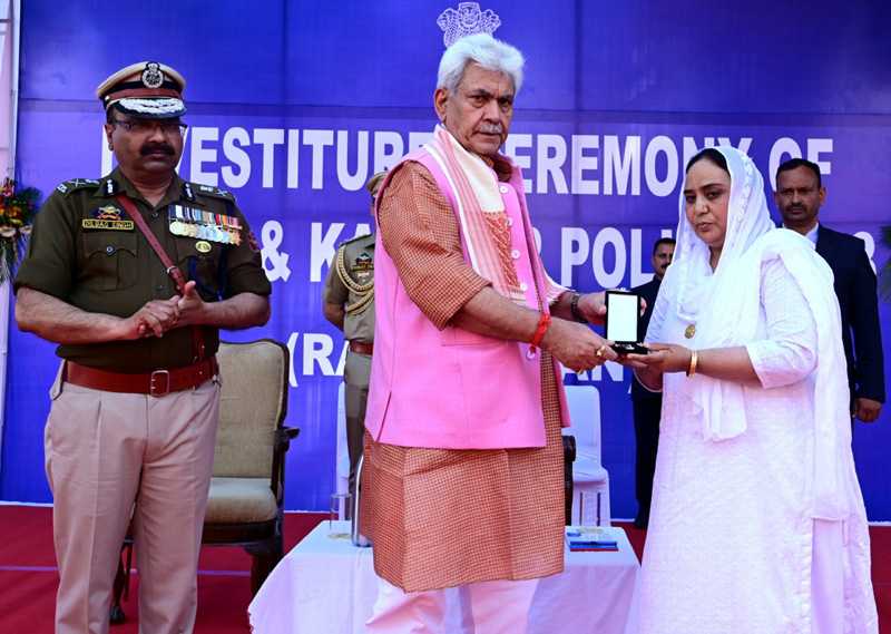 LG Manoj Sinha presenting medal to a martyr’s wife at Raj Bhawan, Jammu on Tuesday. By Daily Excelsior - March 15, 2023 Share FacebookTwitterWhatsAppPinterestLinkedinCopy URLTelegramEmailTumblrReddItPrintKoo LG Manoj Sinha presenting medal to a martyr’s wife at Raj Bhawan, Jammu on Tuesday. LG Manoj Sinha presenting medal to a martyr’s wife at Raj Bhawan, Jammu on Tuesday. Follow our WhatsApp channel