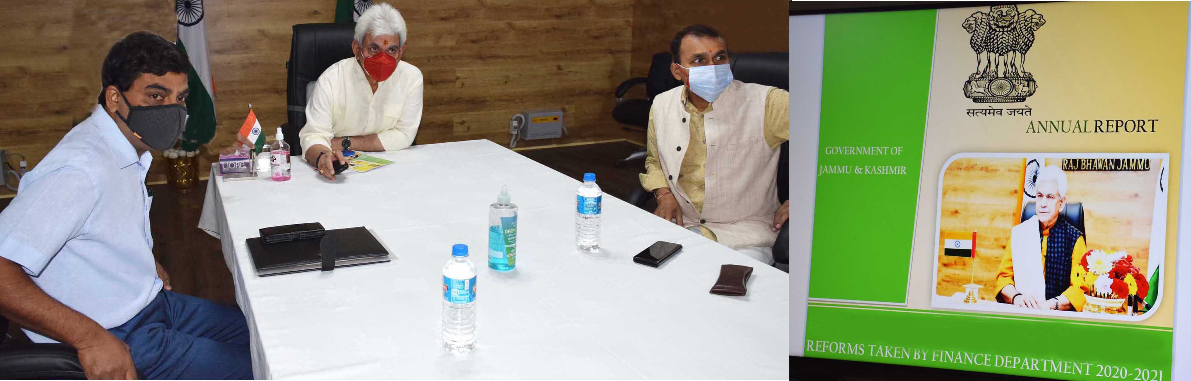 JAMMU: Lieutenant Governor, Manoj Sinha today released “Annual Report- Promoting Good Governance” compiled by the Finance Department showcasing major initiatives undertaken by the said Department during 2020-21 to bring transparency and accountability in the execution of the public works.
