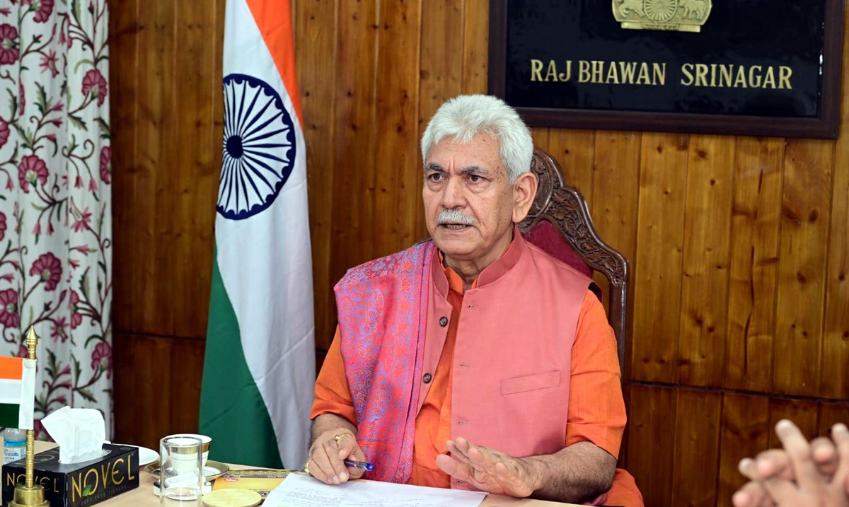LG Manoj Sinha reviewing Shri Amarnath yatra arrangements in Srinagar on Sunday.