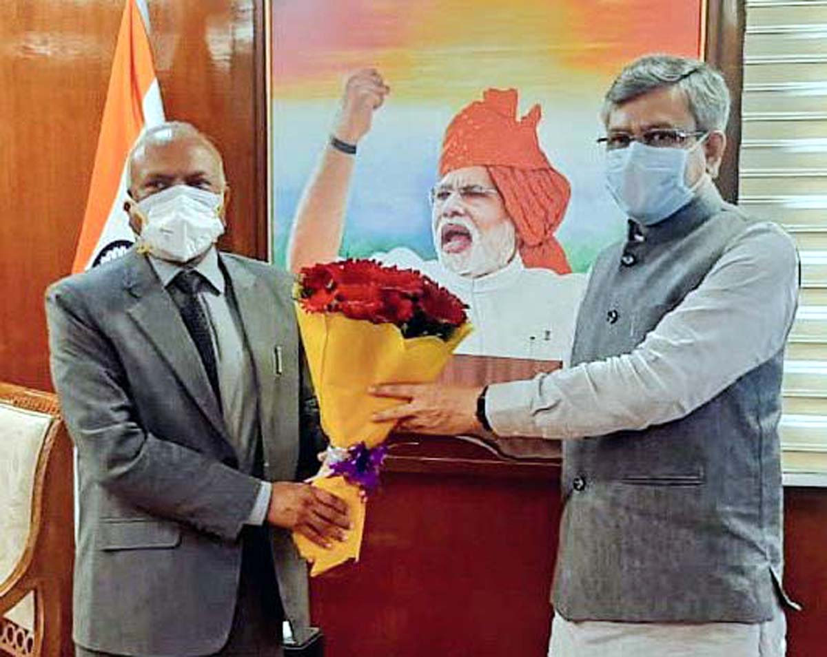 LEH, July 17: Lieutenant Governor of Ladakh, RK Mathur, met the Minister for Railways, Communications, Electronics & Information Technology, Ashwini Vaishnaw, in New Delhi today and stressed the need for saturation coverage with 4G connectivity for the entire population of Ladakh.