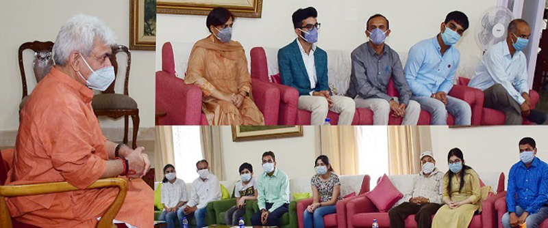 In a meeting, the Lt Governor met Ayushi Bhat, Aruja Sambyal, Shivani Sharma, and Ankit Sharma in addition to Avikshit and congratulated them for their achievement.