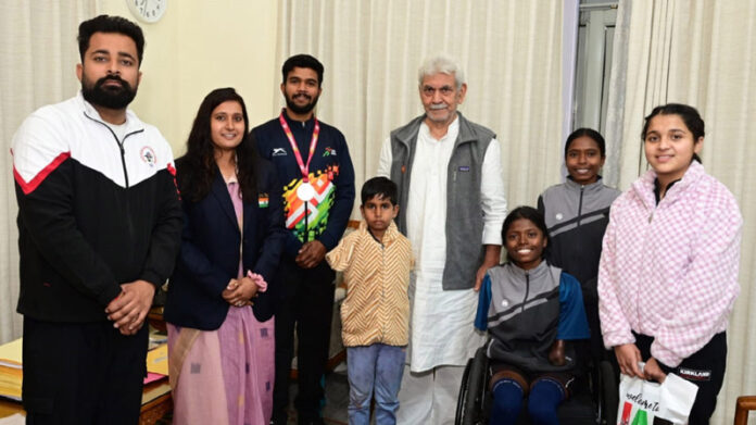 JAMMU, Dec 20: Lieutenant Governor Manoj Sinha met International Para-Archer Payal Nag and a 6-year-old Para Archer Master Aayush, at Lok Bhawan. The athletes were accompanied by Archery Coach Abhilasha Chaudhary.