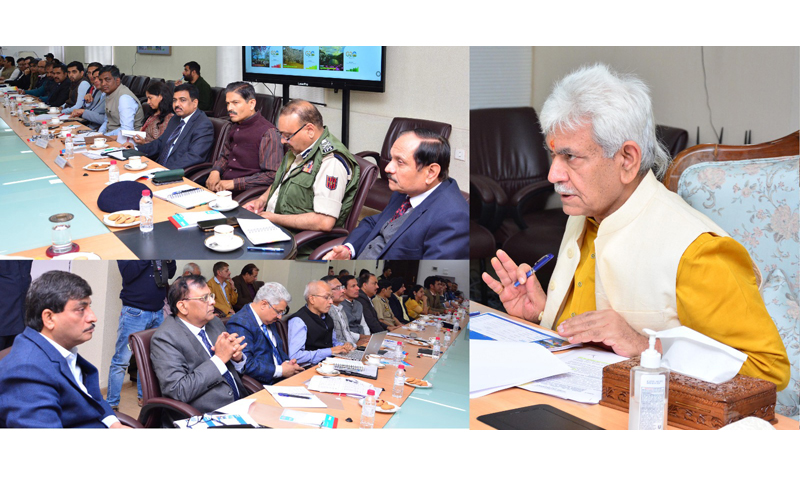 Lt Governor Manoj Sinha chairing a meeting in Srinagar.