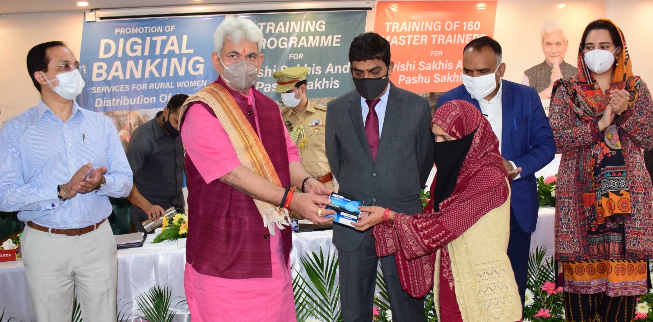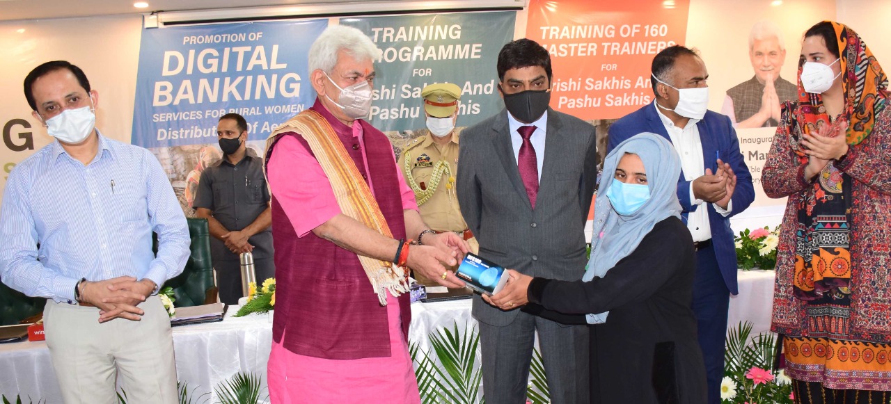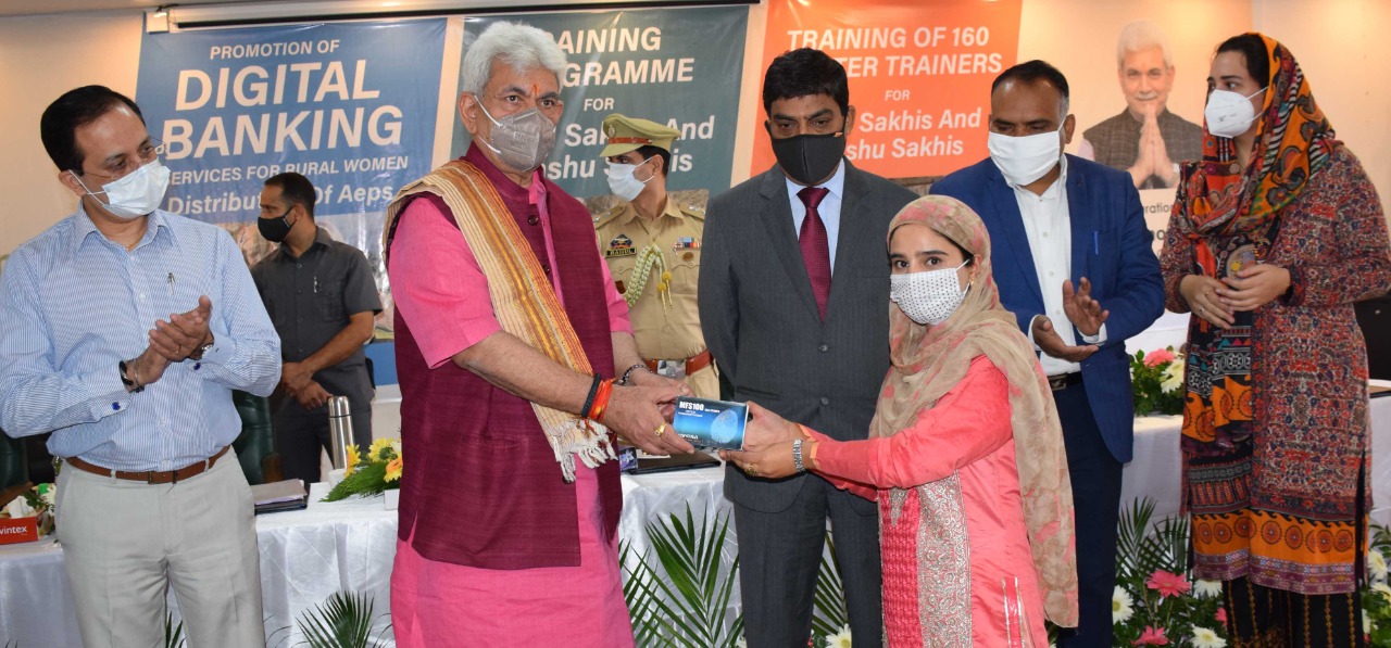 On the occasion, the Lt Governor distributed 80 Aadhaar Enabled Payment Systems (AEPs) among the DIGI-Pay Sakhis under JKRLM. He also inaugurated a week-long training program for Krishi Sakhis and Pashu Sakhis on sustainable agriculture and livestock management.