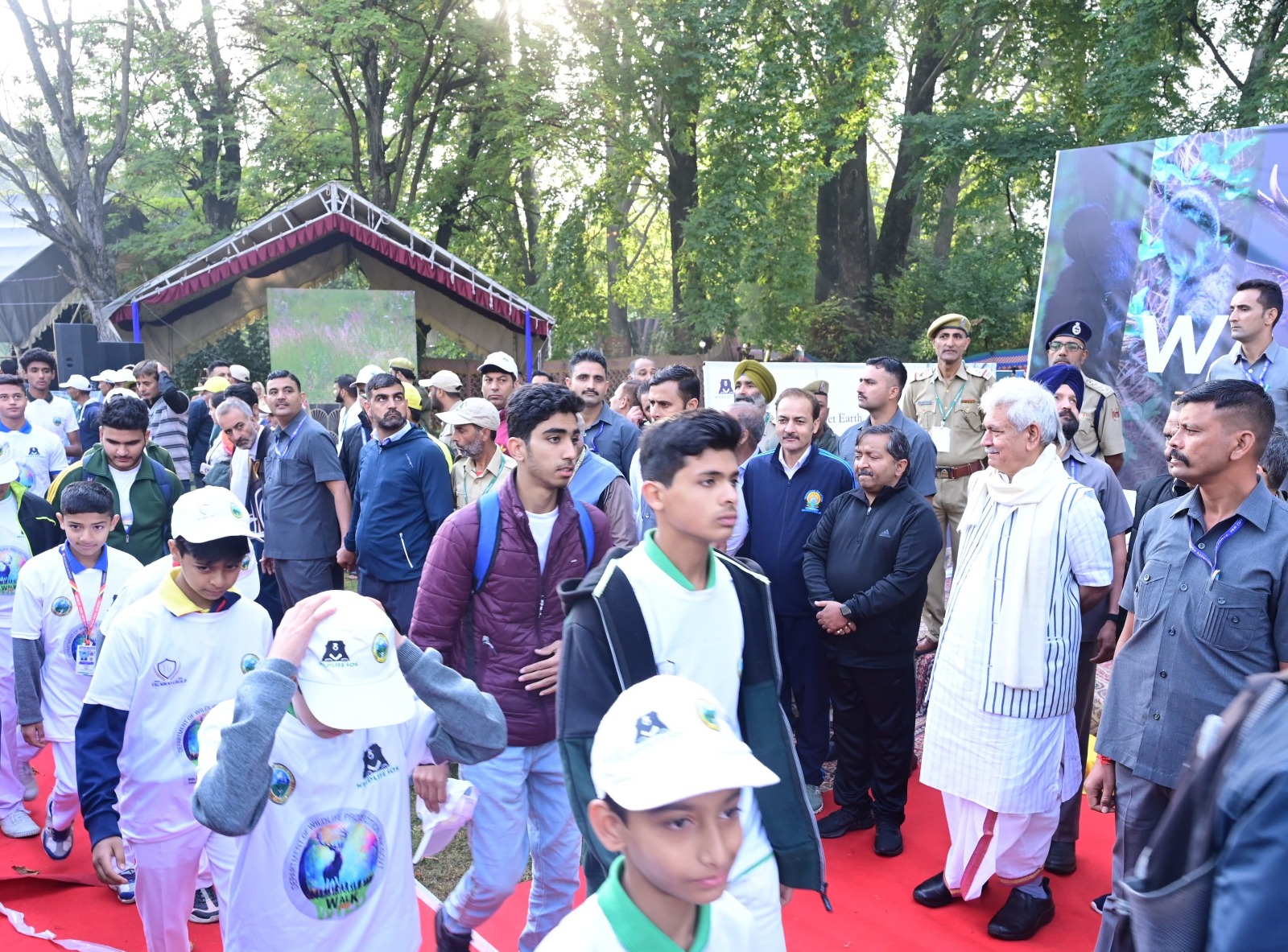 Srinagar, Oct 7: Lieutenant Governor Manoj Sinha flagged off Walkathon ‘Walk for Wildlife’, as a part of Wildlife Week 2023 from Police Golf Course to Nishat Bagh, Srinagar.
