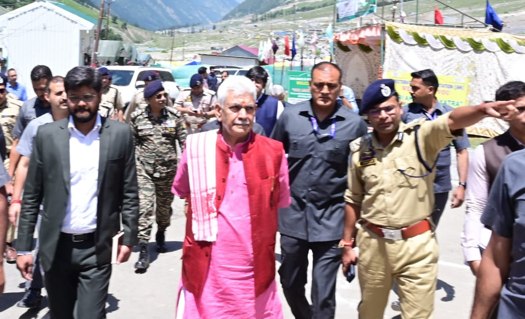 Vijay Kumar, ADGP Kashmir; Dr Mandeep Kumar Bhandari, CEO, Shri Amarnath Ji Shrine Board; other senior officers of UT Administration, Shri Amarnath Ji Shrine Board, Police and Army also accompanied the Lt Governor.